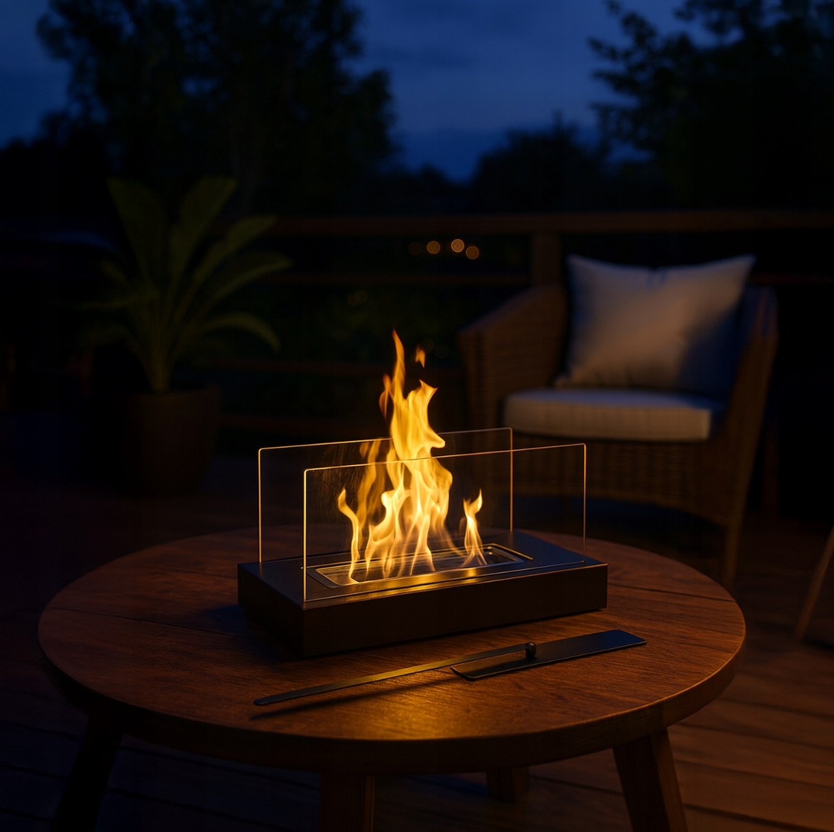 Efekt: prawdziwy płomień i ciepło, luksusowa atmosfera w kilka sekund – idealne do kolacji, relaksu i wieczornych spotkań.